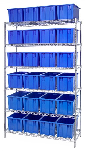 QUANTUM STORAGE SYSTEMS WR6-24185 Wire Shelving, Stack And Nest Totes, 6 Shelves, 18 x 48 x 74 Inch Size, 24 Bins