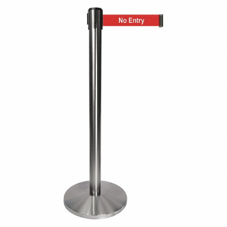 QUEUEWAY QPLUS-1S-RB Barrier Post With Belt, Metal, Satin Chrome, 40 Inch Height, 2 1/2 Inch Dia.