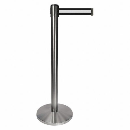 QUEUEWAY QPLUS-1S-S3 Barrier Post With Belt, Metal, Satin Chrome, 40 Inch Height, 2 1/2 Inch Dia.
