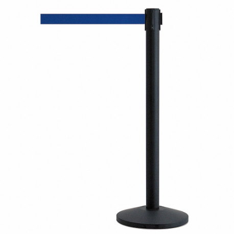 QUEUEWAY QWAYPOST-33-L5 Barrier Post With Belt, Steel, Black, 39 Inch Post Height