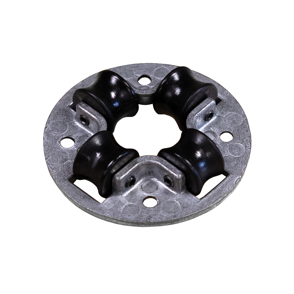 ,The four-way roller guide assemblies are for use with reels on cabinet door openings and for similar locations where sharp edges may cut or damage the hose. The four-way design permits pulling or retracting hose at any angle.,