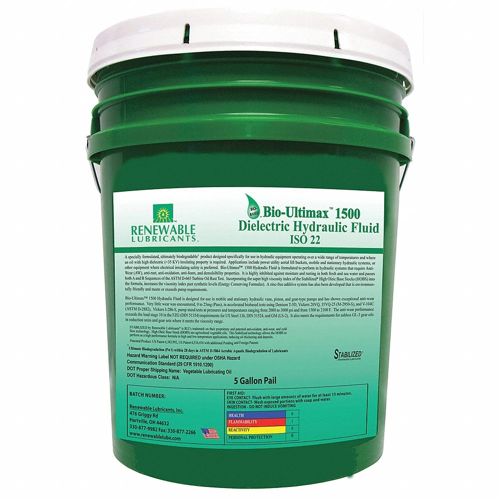 RENEWABLE LUBRICANTS 81094 Hydraulic Oil, Vegetable Oil, 5 Gallon Pail, Viscosity ISO Grade 22