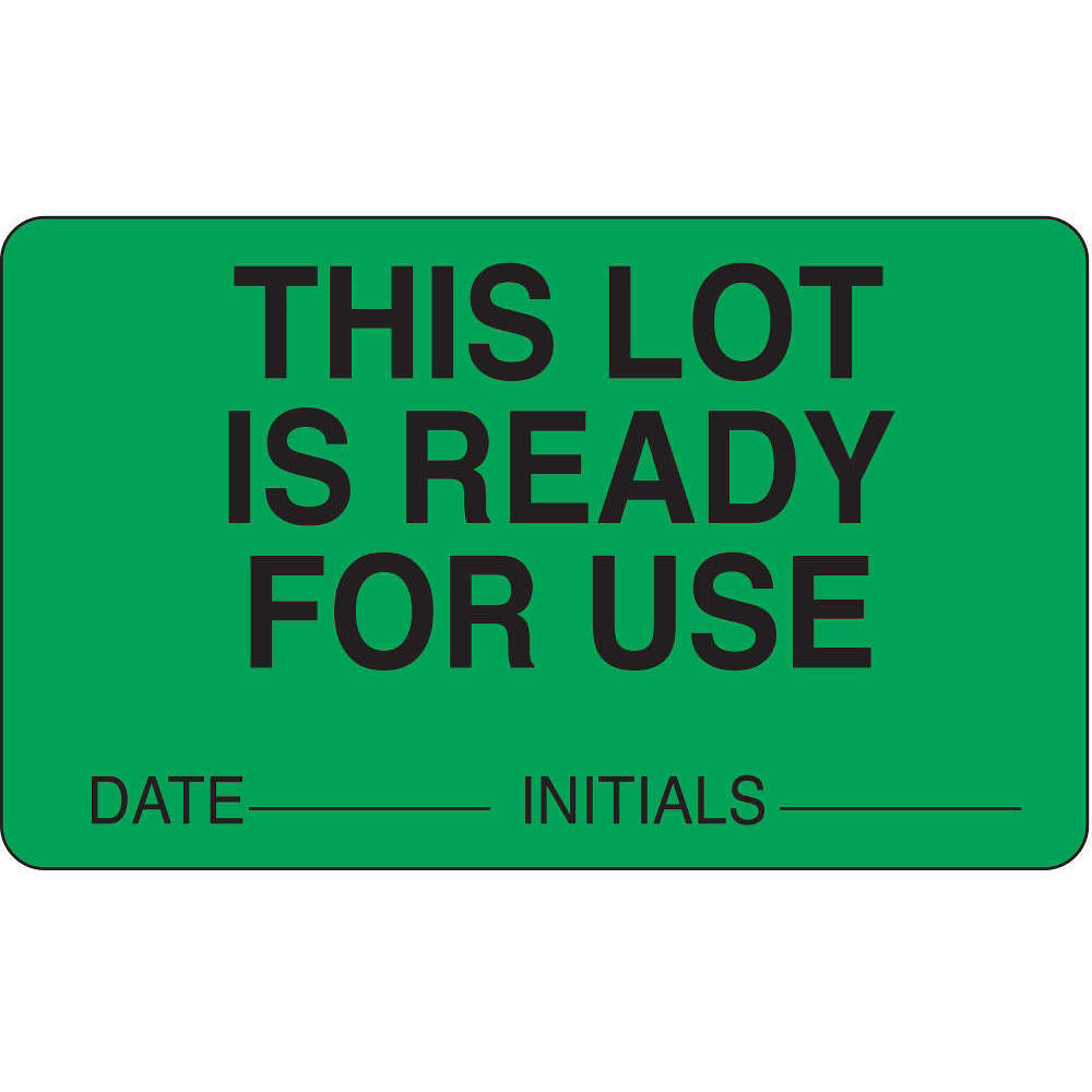 141457 | Ready For Use | 1" | This Lot Is Ready For Use Date____ Init____ | Green | Paper | Adhesive | 1000 | Acrylic | 1000 | €84.65 | |
