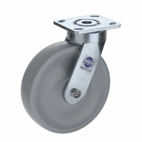 RWM 48-GTB-0820-S Plate Caster, 8 Inch Dia, 9 1/2 Inch Height, Swivel Caster