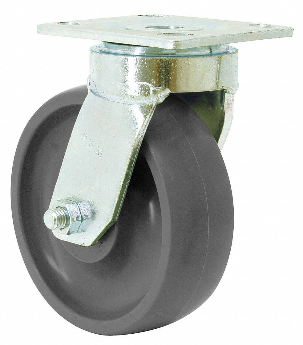 RWM 48-RAB-0620-S-EHT Maintenance-Free Plate Caster, Swivel, Rubber, 615 lb Capacity, 6 Inch Wheel Dia.