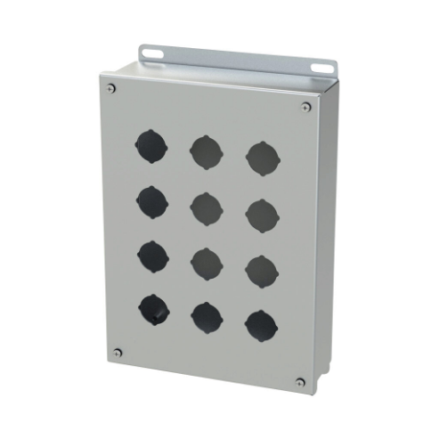 SAGINAW SCE-12PBSS6 Pushbutton Enclosure, 12 Holes, 30mm, 12 x 9 x 3 Inch Size, Wall Mount