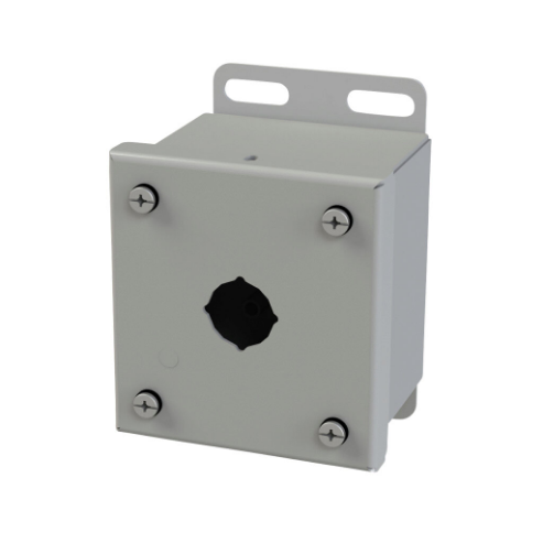SAGINAW SCE-1PBI Pushbutton Enclosure, 1 Hole, 22mm, 4 x 4 x 3 Inch Size, Wall Mount, Carbon Steel
