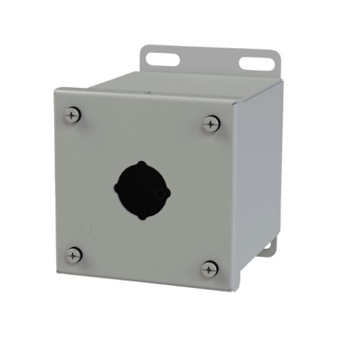 SAGINAW SCE-1PBX Pushbutton Enclosure, 1 Hole, 30mm, 4 x 4 x 5 Inch Size, Wall Mount, Carbon Steel