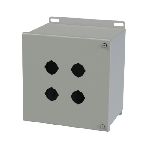 SAGINAW SCE-4SPBH Pushbutton Enclosure, 4 Holes, 30mm, 8 x 8 x 6 Inch Size, Wall Mount, Carbon Steel