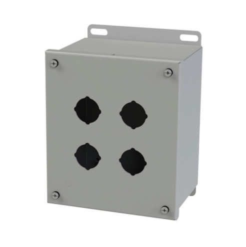 SAGINAW SCE-4SPBX Pushbutton Enclosure, 4 Holes, 30mm, 8 x 7 x 5 Inch Size, Wall Mount, Carbon Steel