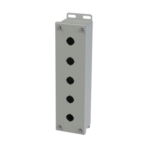 SAGINAW SCE-5PBI Pushbutton Enclosure, 5 Holes, 22mm, 13 x 4 x 3 Inch Size, Wall Mount, Carbon Steel