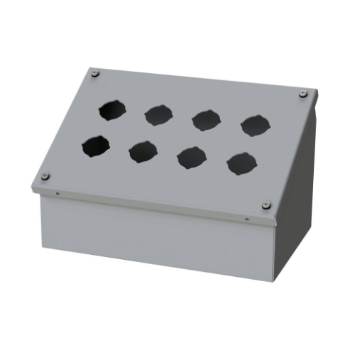 SAGINAW SCE-8PBA Pushbutton Consolet, 8 Holes, 30mm, 7 x 11 x 7 Inch Size, Wall Mount, Carbon Steel