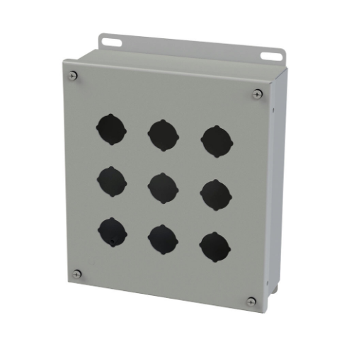 SAGINAW SCE-9PB Pushbutton Enclosure, 9 Holes, 30mm, 10 x 9 x 3 Inch Size, Wall Mount, Carbon Steel
