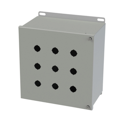 SAGINAW SCE-9PBHI Pushbutton Enclosure, 9 Holes, 22mm, 10 x 10 x 6 Inch Size, Wall Mount, Carbon Steel