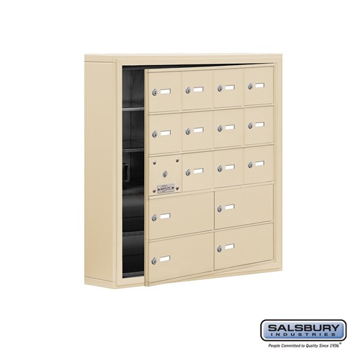 SALSBURY INDUSTRIES 19155-16SSK Cell Phone Storage Locker, 30.5 x 31 x 6.25 Inch Size, 5 Door High, Sandstone
