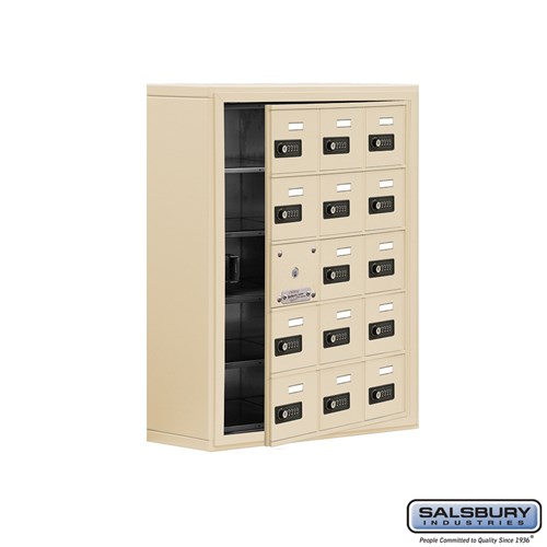 SALSBURY INDUSTRIES 19158-15SSC Cell Phone Storage Locker, 24 x 31 x 9.25 Inch Size, 5 Door High, Sandstone