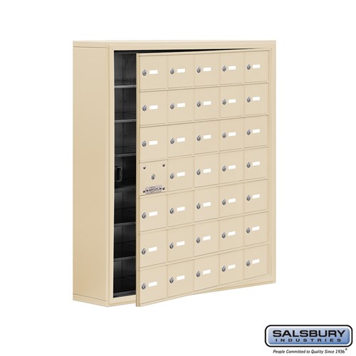 SALSBURY INDUSTRIES 19178-35SSK Cell Phone Storage Locker, 37 x 42 x 9.25 Inch Size, 7 Door High, Sandstone