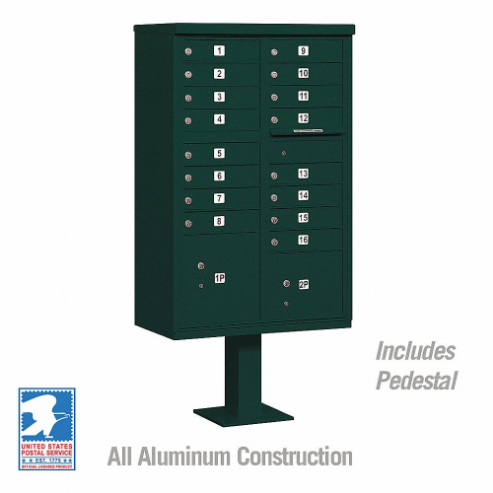 SALSBURY INDUSTRIES 3316GRN-U Cluster Box Unit, 30.5 x 62 x 18 Inch Size, 16 Doors, Green