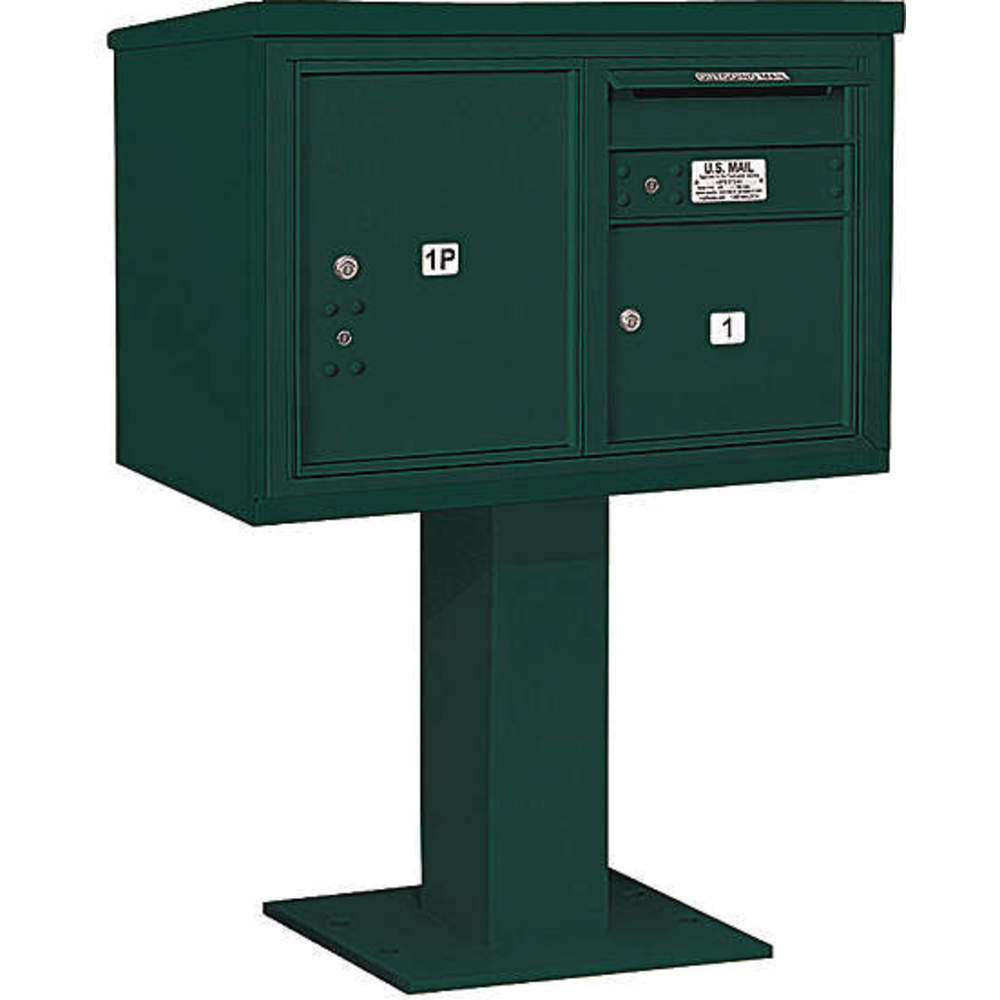 SALSBURY INDUSTRIES 3405D-01GRN Pedestal Mailbox 2 Doors Green 48-1/8 Inch