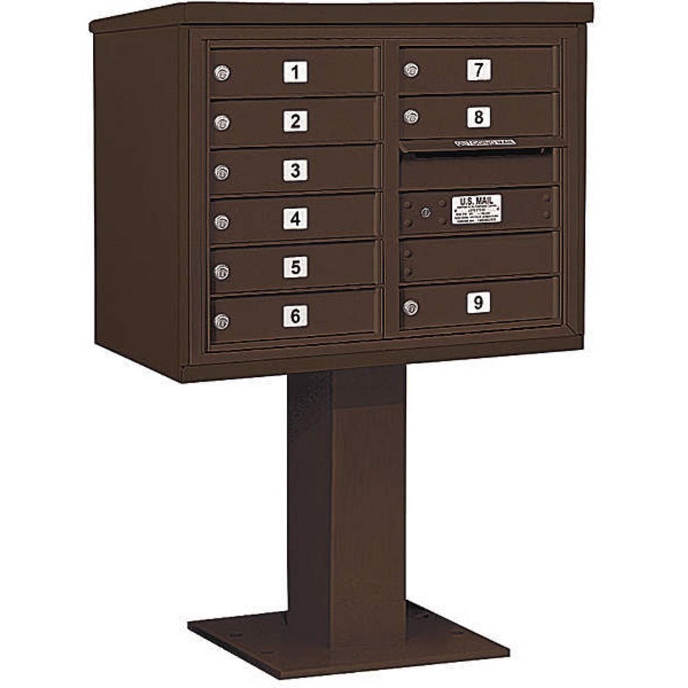 SALSBURY INDUSTRIES 3406D-09BRZ Pedestal Mailbox 9 Doors Bronze 51-5/8 Inch