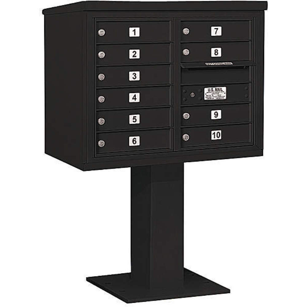 SALSBURY INDUSTRIES 3406D-10BLK Pedestal Mailbox 10 Doors Black 51-5/8 Inch