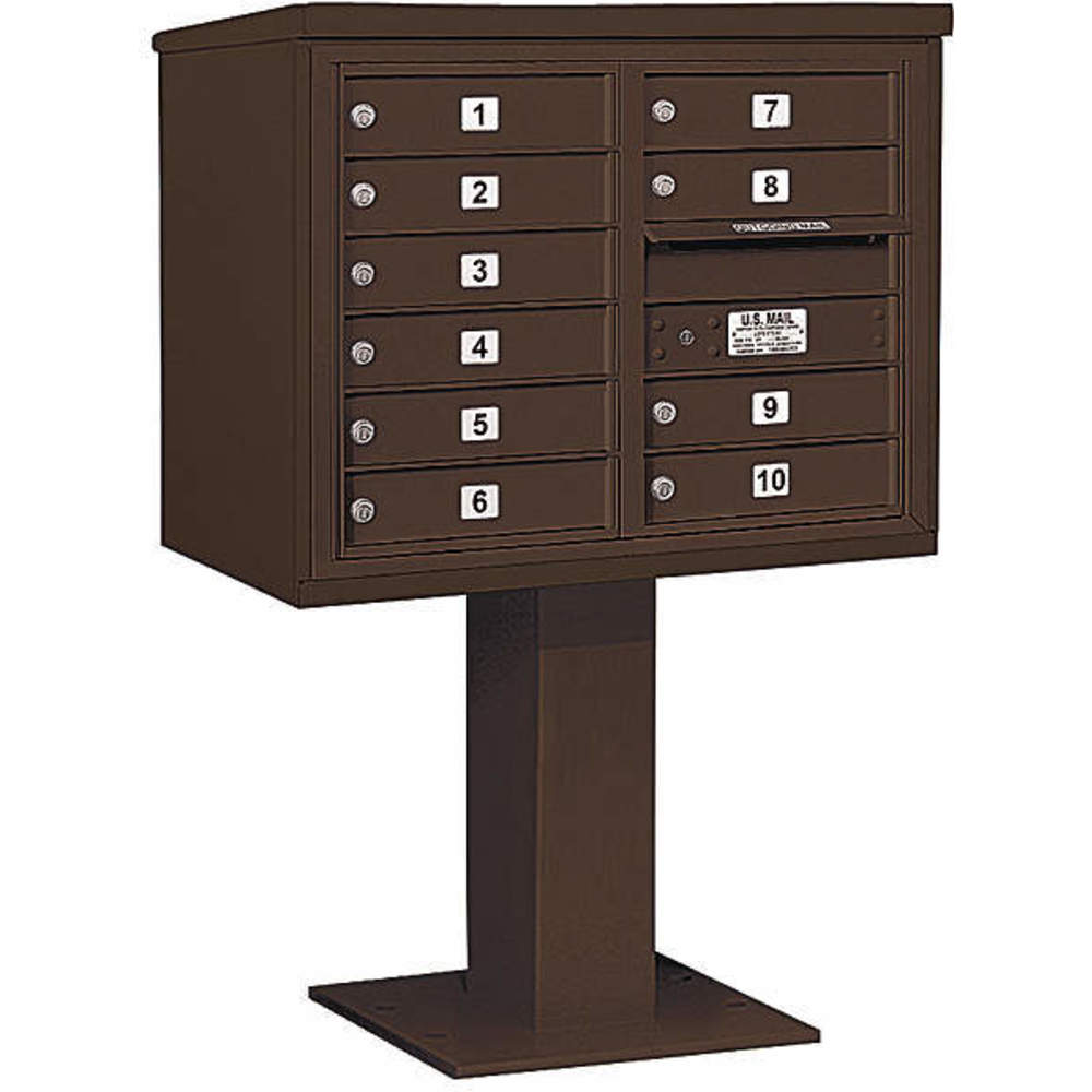 SALSBURY INDUSTRIES 3406D-10BRZ Pedestal Mailbox 10 Door Bronze 51-5/8 Inch
