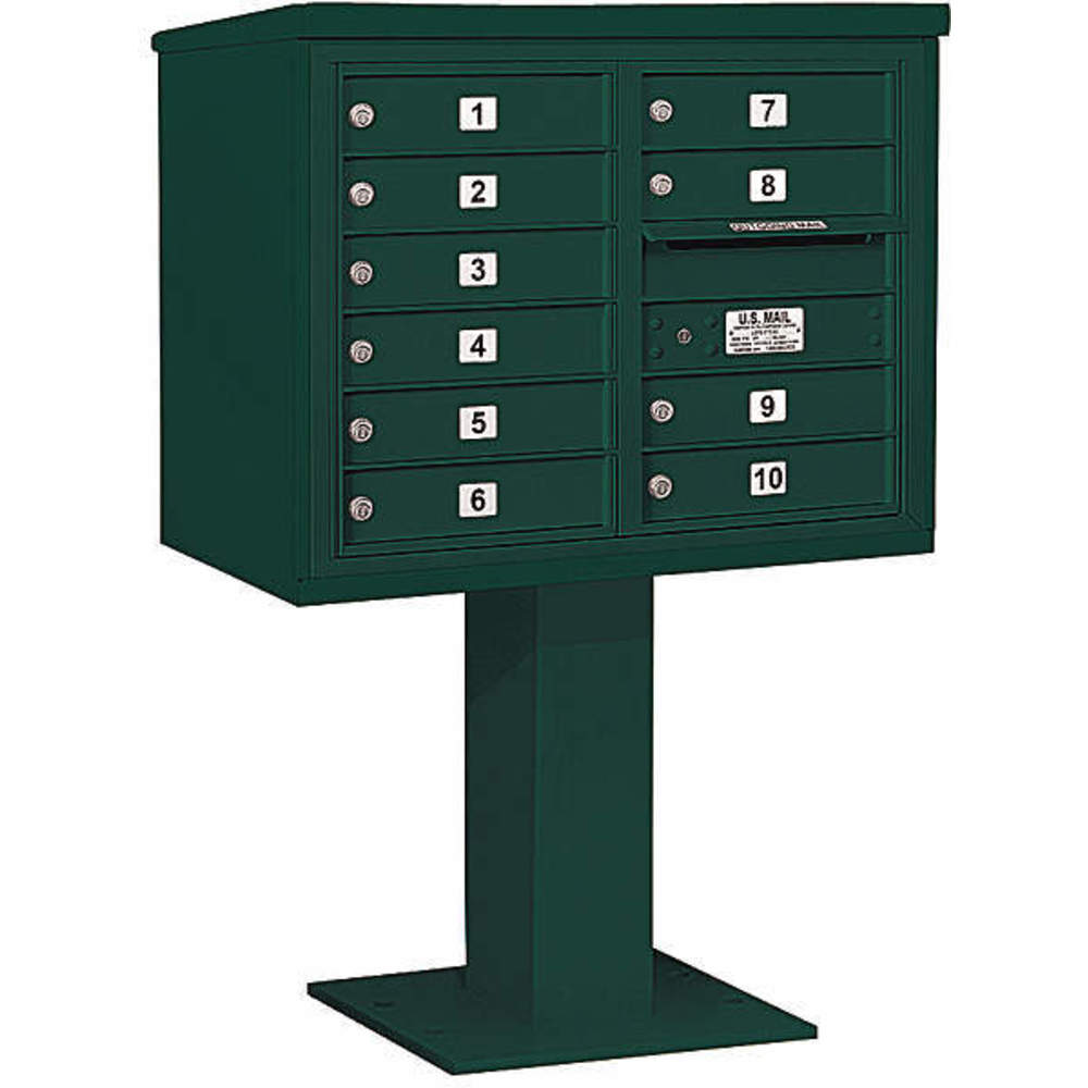 SALSBURY INDUSTRIES 3406D-10GRN Pedestal Mailbox 10 Doors Green 51-5/8 Inch