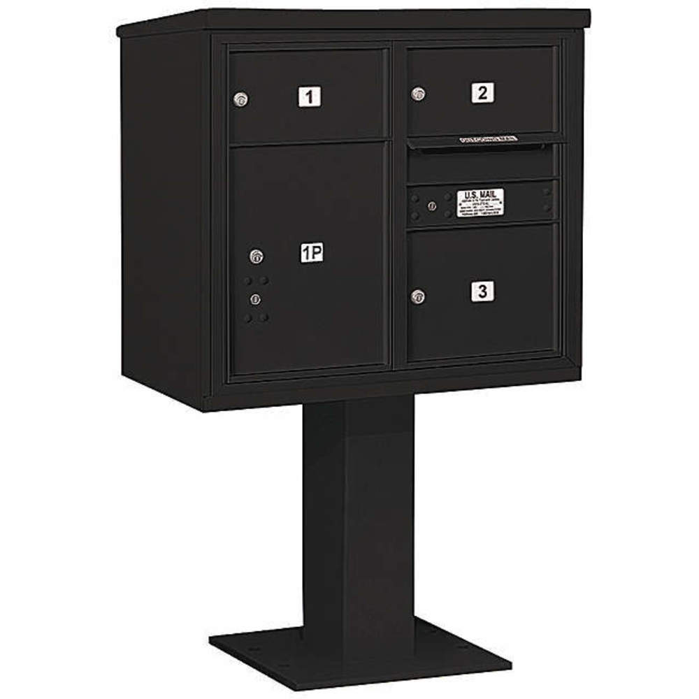 SALSBURY INDUSTRIES 3407D-03BLK Pedestal Mailbox 4 Doors Black 55-1/8 Inch