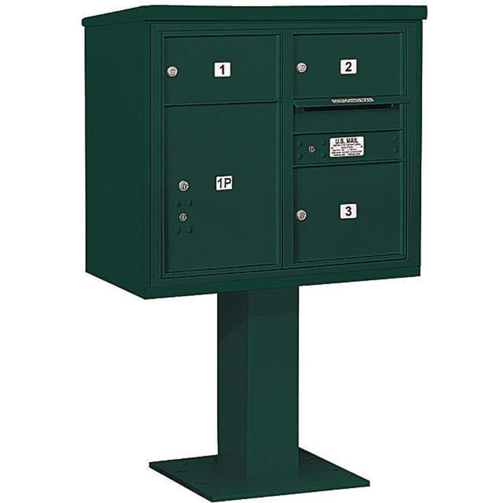 SALSBURY INDUSTRIES 3407D-03GRN Pedestal Mailbox 4 Doors Green 55-1/8 Inch