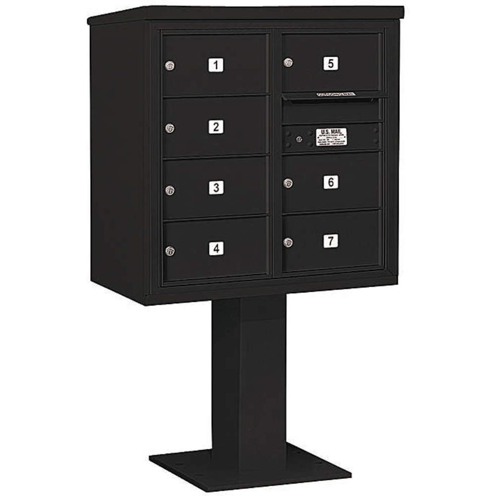 SALSBURY INDUSTRIES 3408D-07BLK Pedestal Mailbox 7 Doors Black 58-5/8 Inch