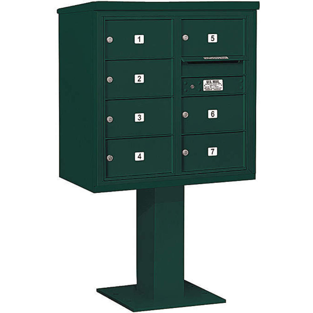 SALSBURY INDUSTRIES 3408D-07GRN Pedestal Mailbox 7 Doors Green 58-5/8 Inch