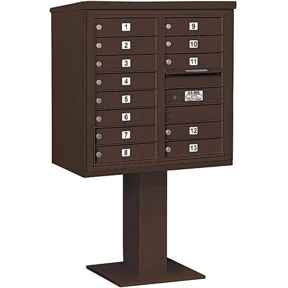 SALSBURY INDUSTRIES 3408D-13BRZ Pedestal Mailbox 13 Door Bronze 58-5/8 Inch