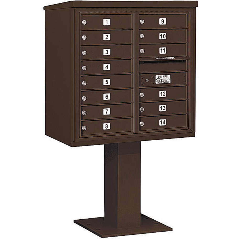 SALSBURY INDUSTRIES 3408D-14BRZ Pedestal Mailbox 14 Door Bronze 58-5/8 Inch
