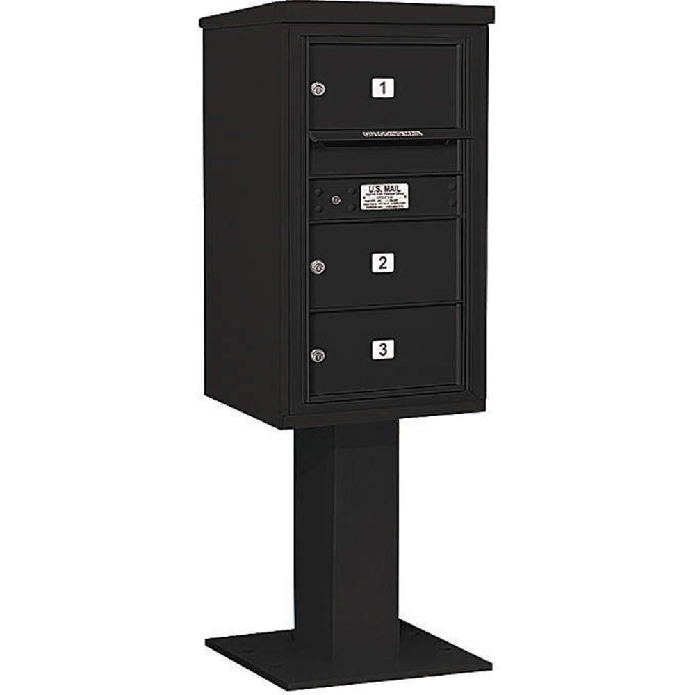 SALSBURY INDUSTRIES 3408S-03BLK Pedestal Mailbox 3 Doors Black 58-5/8 Inch