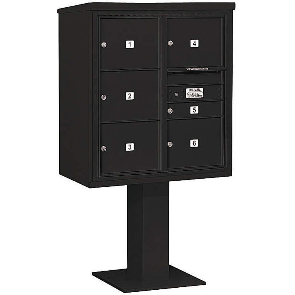 SALSBURY INDUSTRIES 3409D-06BLK Pedestal Mailbox 6 Doors Black 62-1/8 Inch