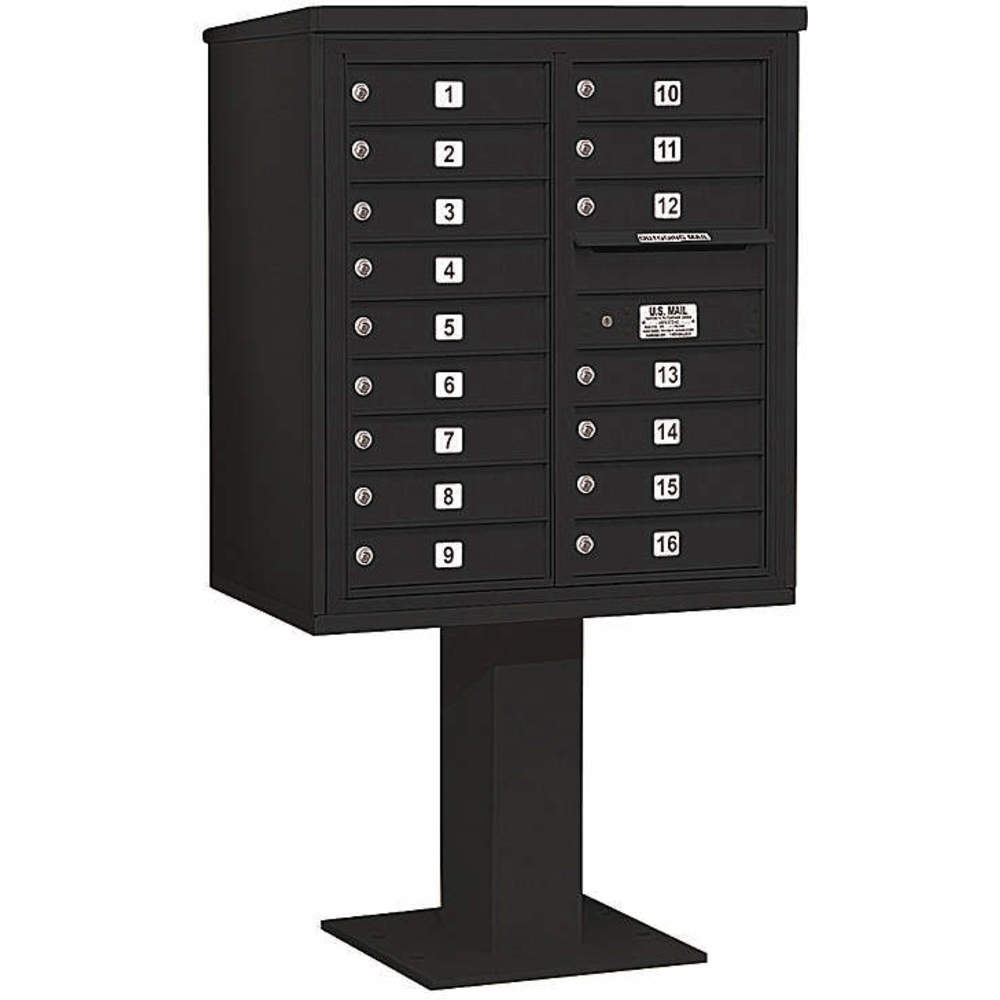 SALSBURY INDUSTRIES 3409D-16BLK Pedestal Mailbox 16 Doors Black 62-1/8 Inch
