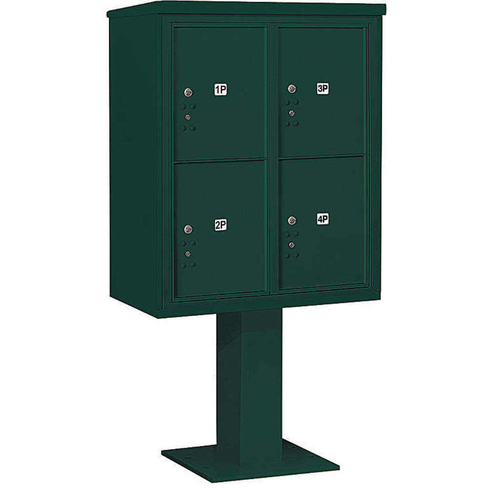 SALSBURY INDUSTRIES 3410D-4PGRN Pedestal Mailbox 4 Doors Green 65-5/8 Inch