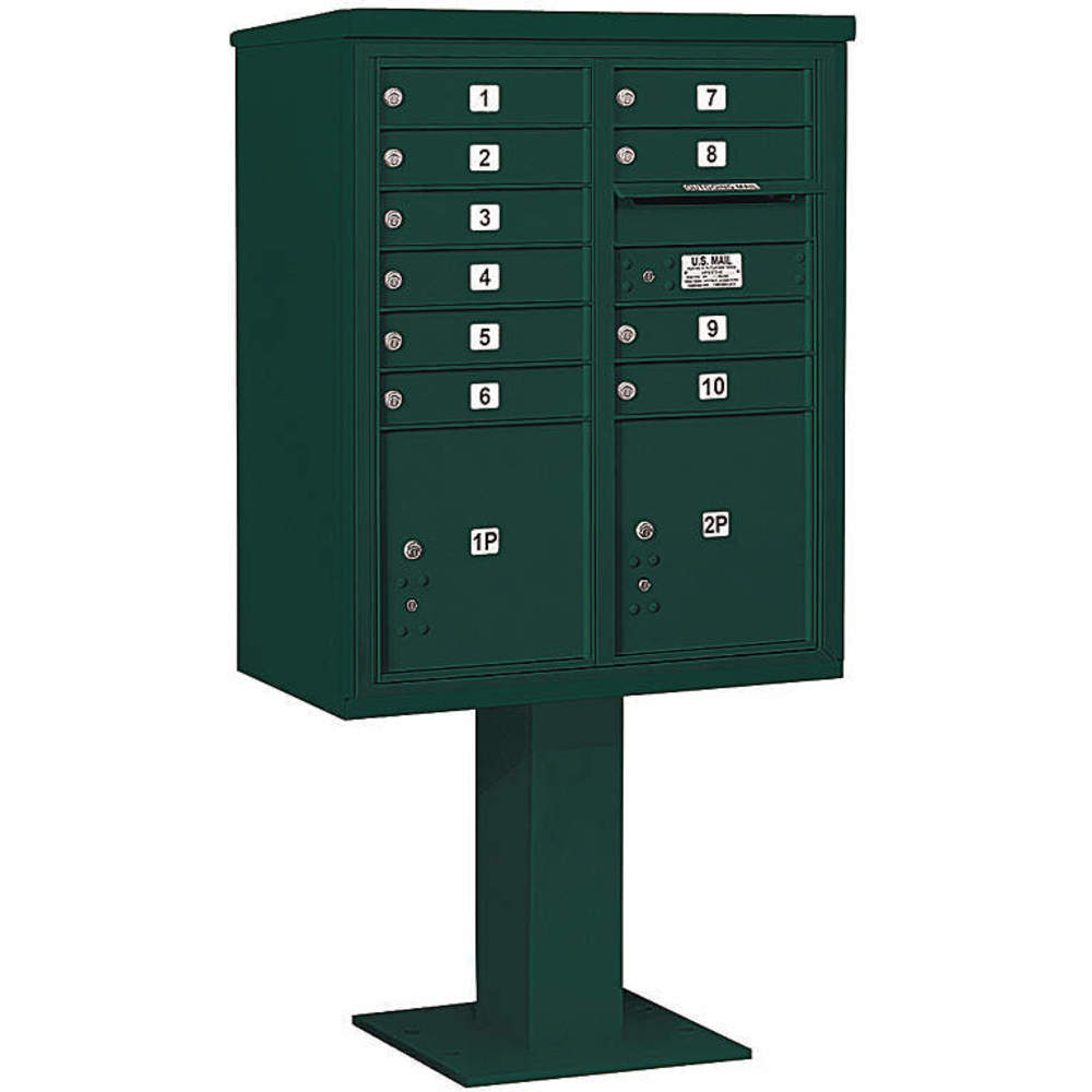 SALSBURY INDUSTRIES 3410DA-10GRN Pedestal Mailbox 12 Doors Green 65-5/8 Inch