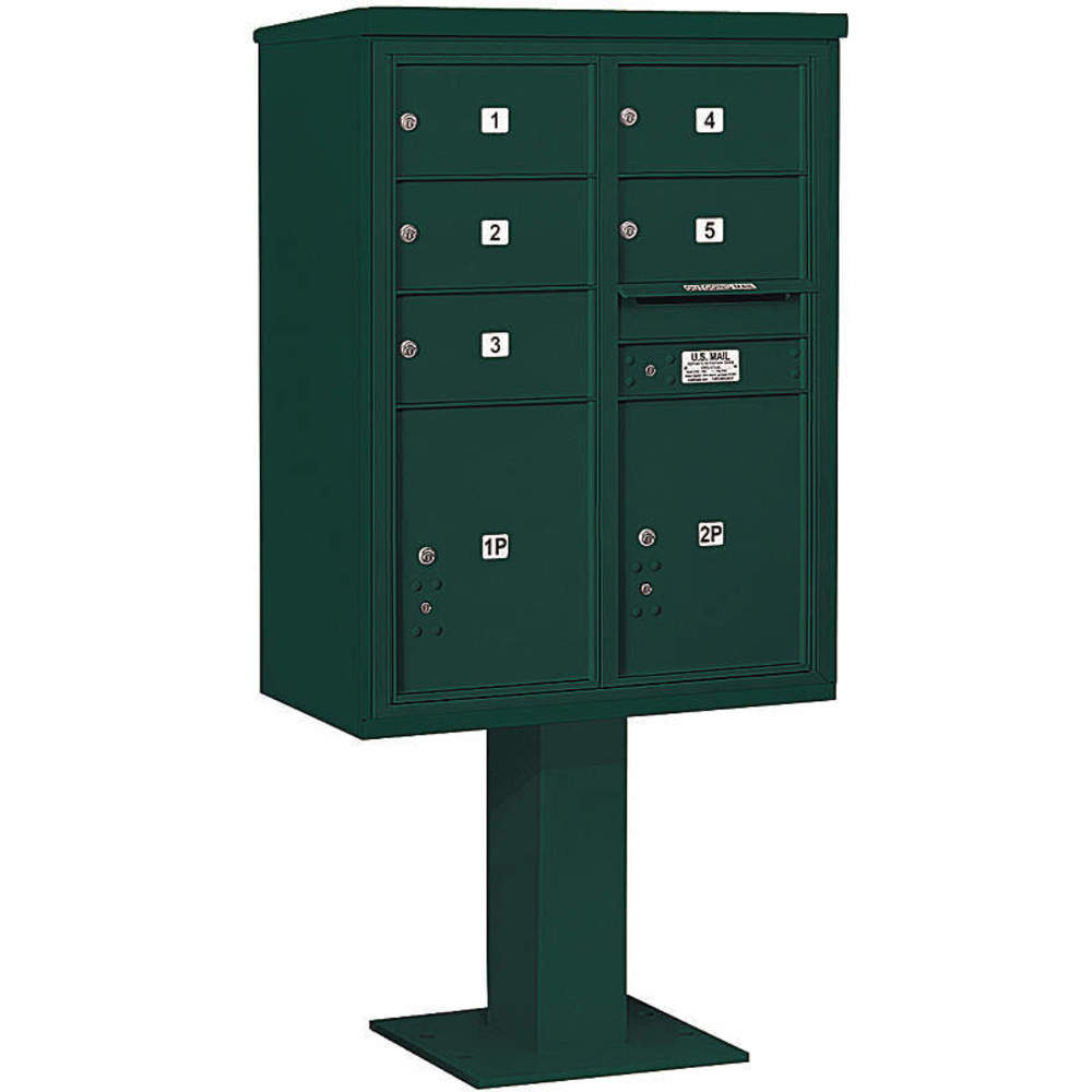 SALSBURY INDUSTRIES 3411D-05GRN Pedestal Mailbox 7 Doors Green 69-1/8 Inch