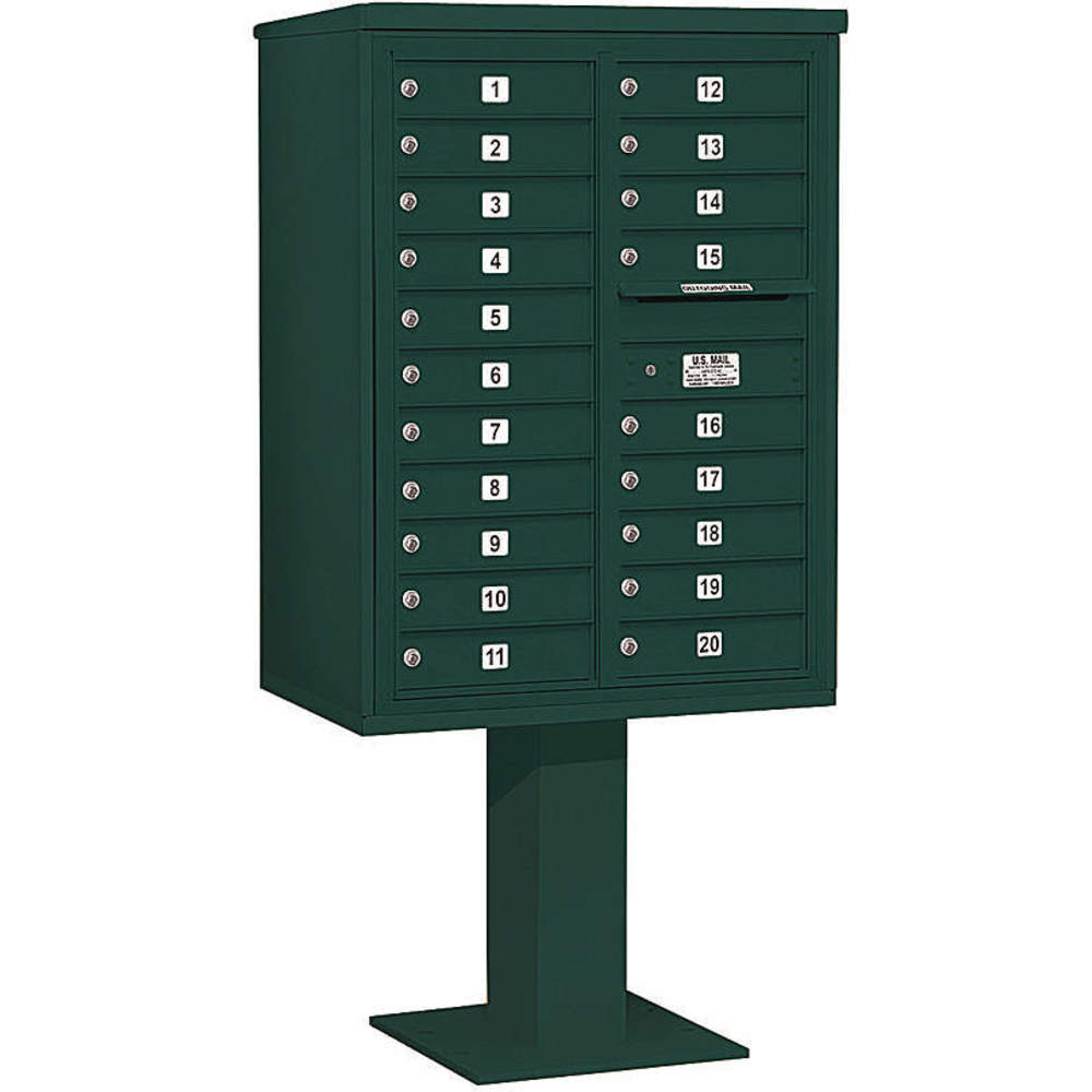 SALSBURY INDUSTRIES 3411D-20GRN Pedestal Mailbox 20 Doors Green 69-1/8 Inch