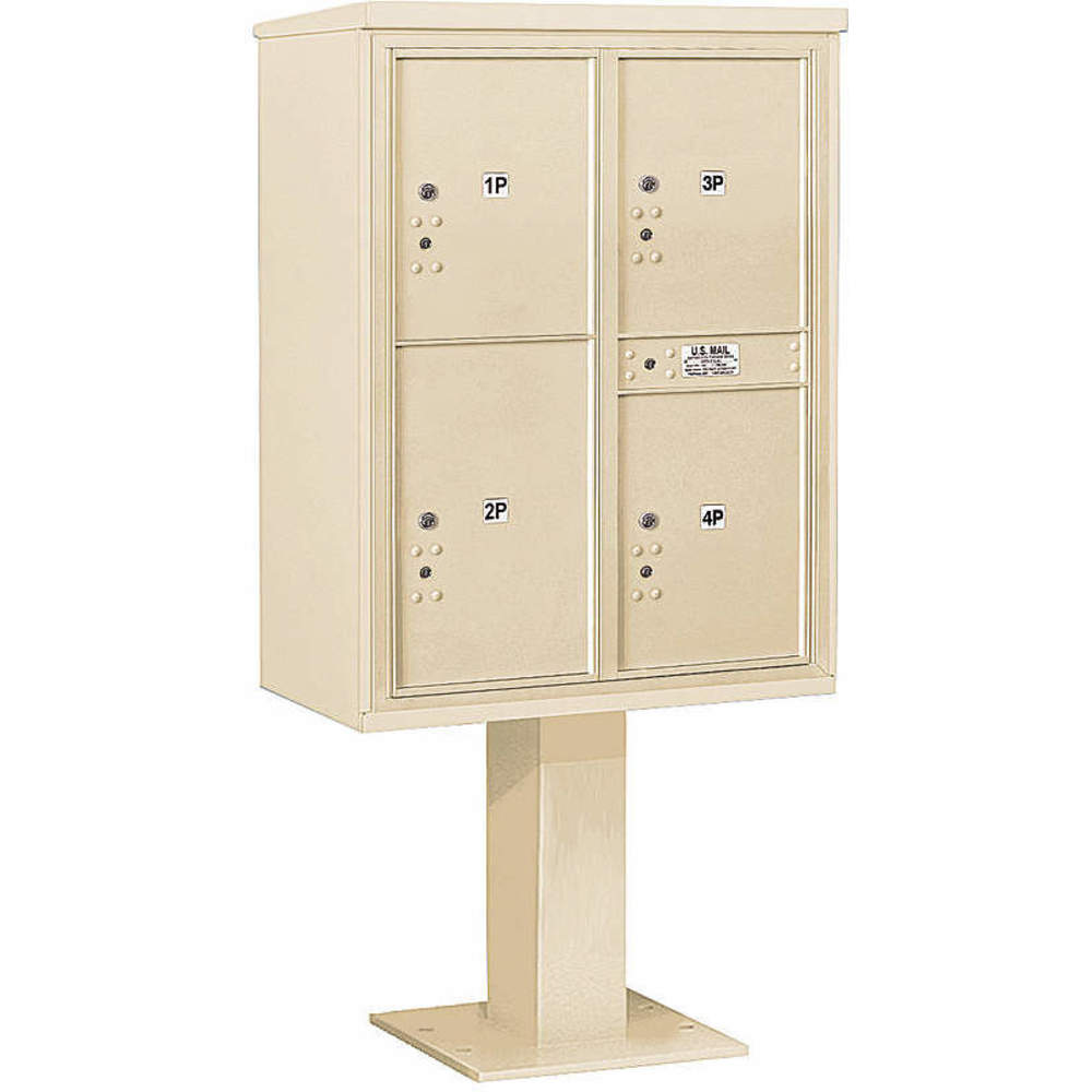 SALSBURY INDUSTRIES 3411D-4PSAN Pedestal Mailbox 4 Doors Sand 69-1/8 Inch