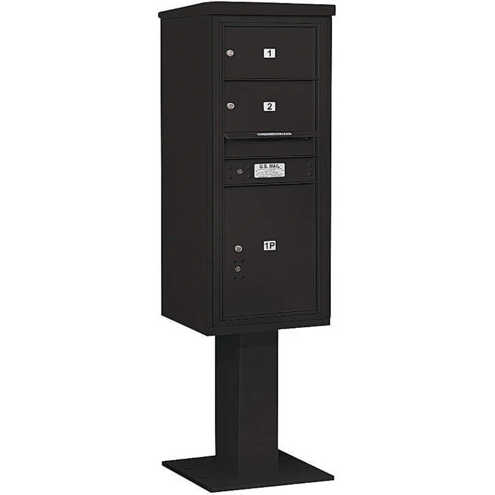 SALSBURY INDUSTRIES 3411S-02BLK Pedestal Mailbox 3 Doors Black 69-1/8 Inch