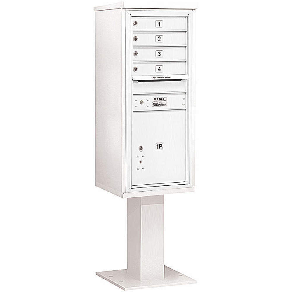 SALSBURY INDUSTRIES 3411S-04WHT Pedestal Mailbox 5 Doors White 69-1/8 Inch