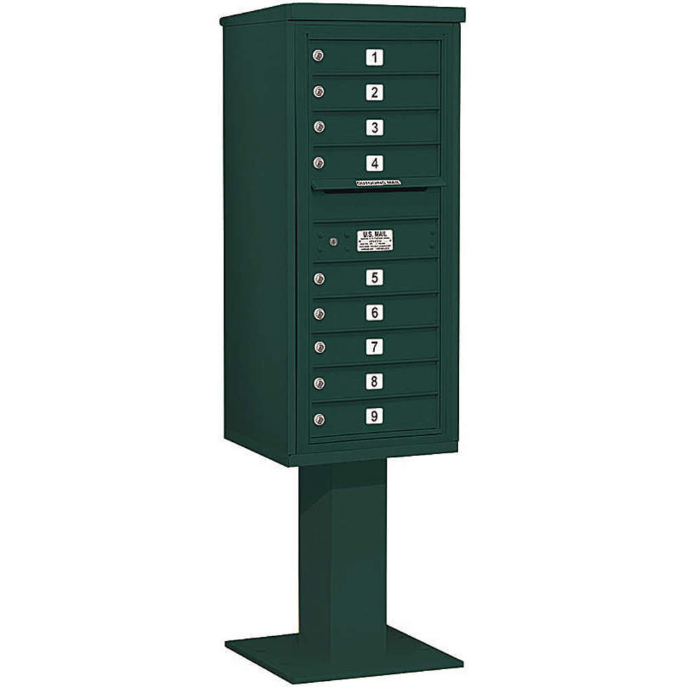 SALSBURY INDUSTRIES 3411S-09GRN Pedestal Mailbox 9 Doors Green 69-1/8 Inch