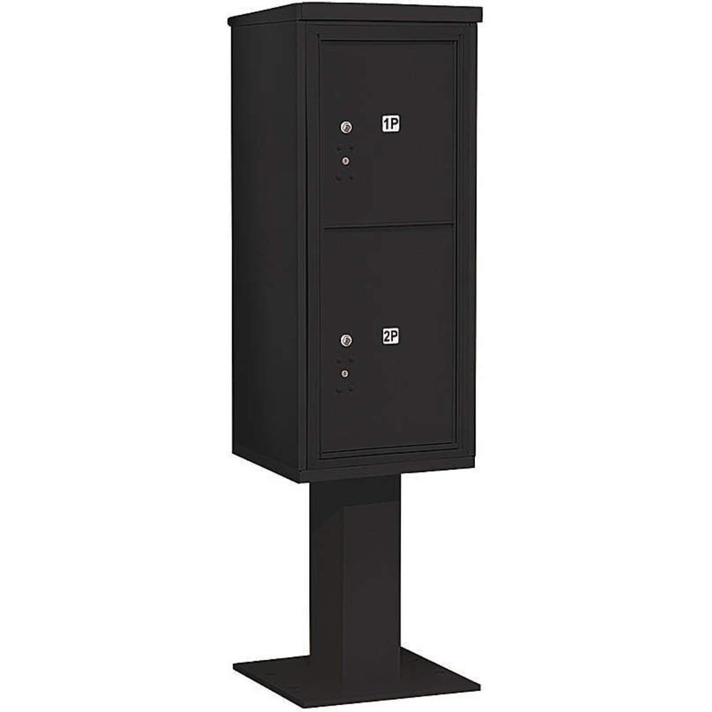 SALSBURY INDUSTRIES 3411S-2PBLK Pedestal Mailbox 2 Doors Black 69-1/8 Inch