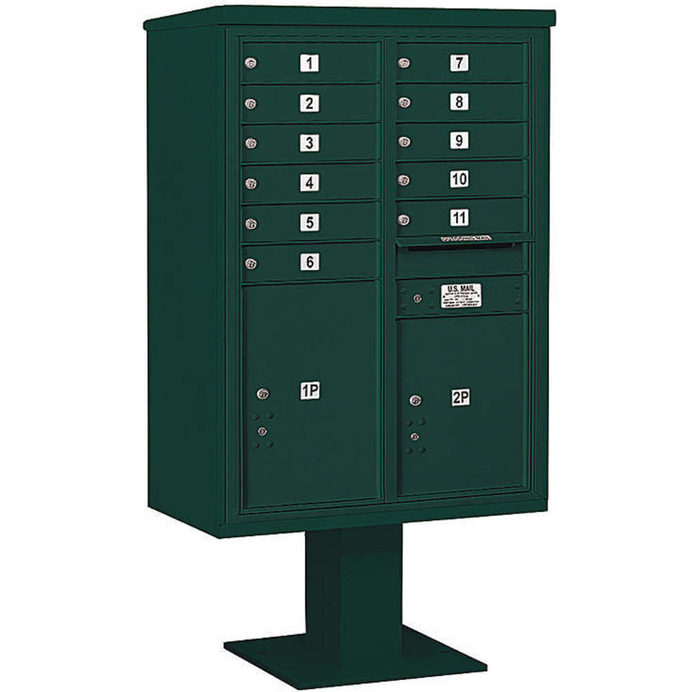 SALSBURY INDUSTRIES 3412D-11GRN Pedestal Mailbox 13 Doors Green 59-3/4 Inch