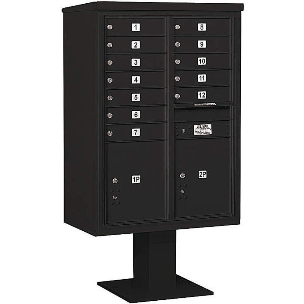 SALSBURY INDUSTRIES 3412D-12BLK Pedestal Mailbox 14 Doors Black 59-3/4 Inch