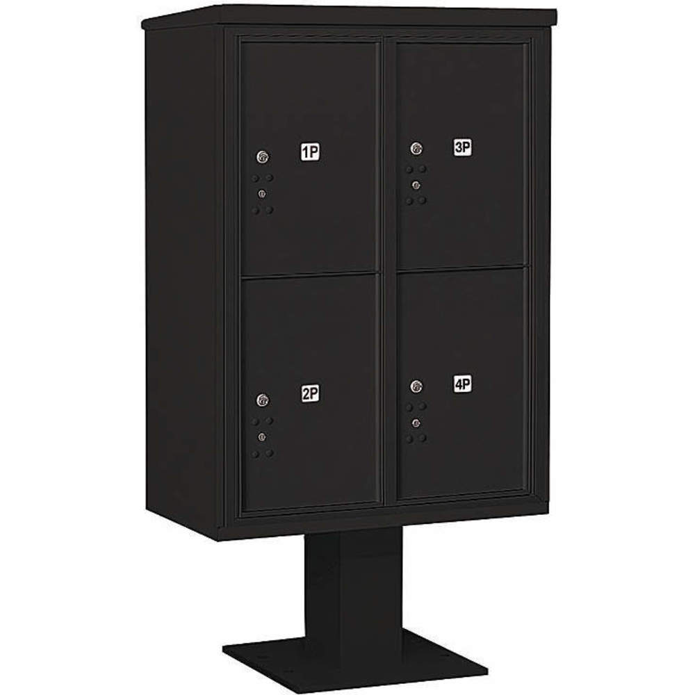 SALSBURY INDUSTRIES 3412D-4PBLK Pedestal Mailbox 4 Doors Black 59-3/4 Inch
