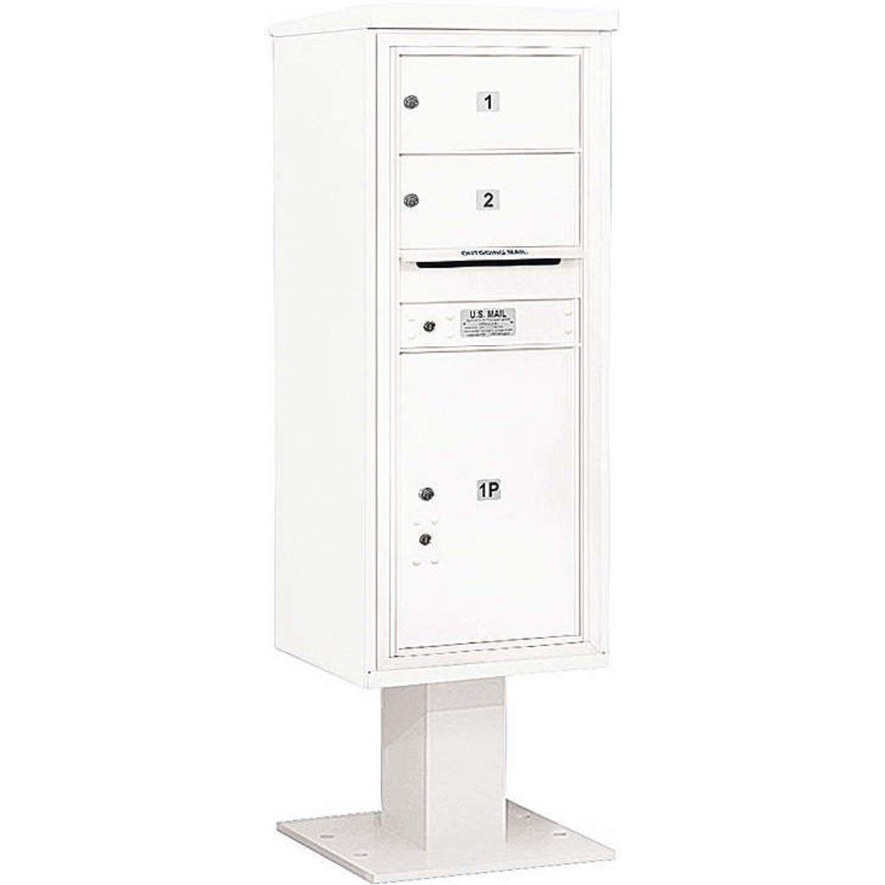 SALSBURY INDUSTRIES 3412S-02WHT Pedestal Mailbox 3 Doors White 59-3/4 Inch
