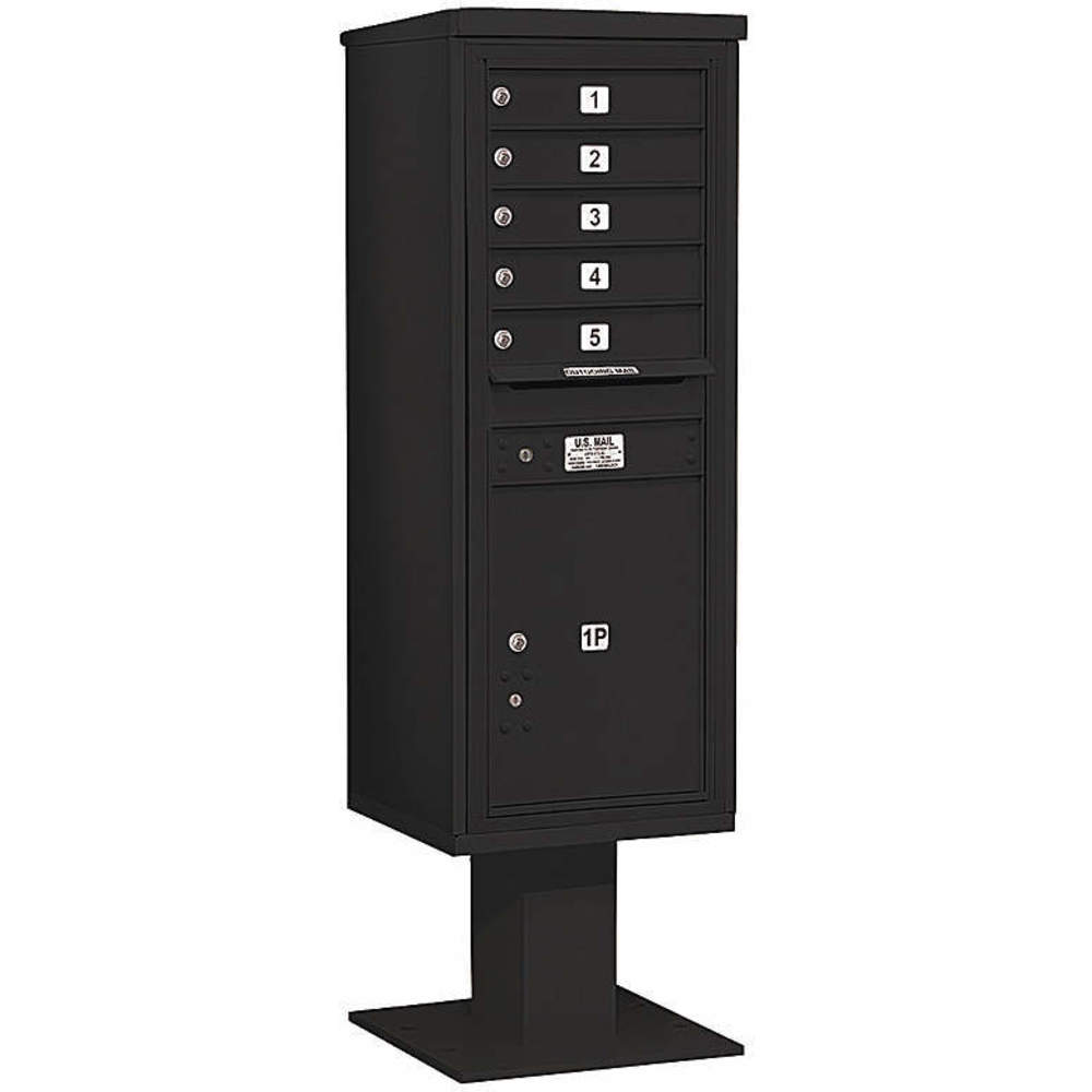 SALSBURY INDUSTRIES 3413S-05BLK Pedestal Mailbox 6 Doors Black 63-1/4 Inch